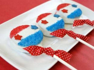 1. Insert a lollipop stick into the center of each Oreo® cookie.