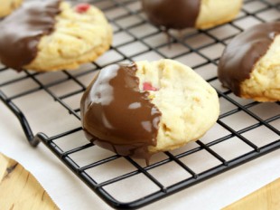 7. Dip half of each cookie in melted coating and place on wax paper to dry.