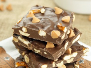 4. Sprinkle with remaining pretzel pieces and butterscotch chips.