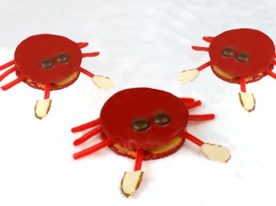 the crab’s legs. Use a dab of CANDIQUIK® to attach an almond slice to each of the front legs.