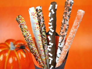 3. Sprinkle dipped pretzels before coating is set. Place on wax paper to dry.