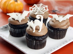 5. Allow to set completely. Once set; peel shapes away from wax paper and press lightly on top of cupcakes.