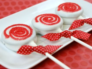 1. Insert a lollipop stick into the center of each OREO® cookie.