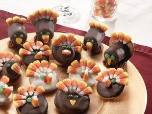 3. Arrange candy corn around top of cookie to form turkey’s tail.
