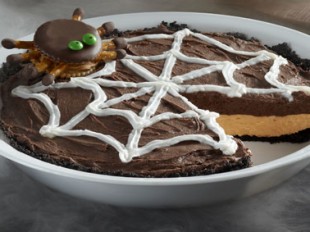 8. For spider web: using cake icing, pipe web design on top of the cheesecake.