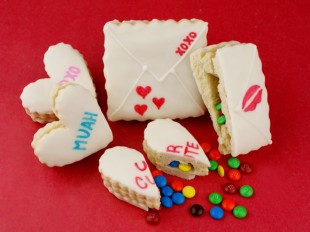 8. To create envelope decoration: pipe on CANDIQUIK® as shown in the photo. Decorate with edible markers.